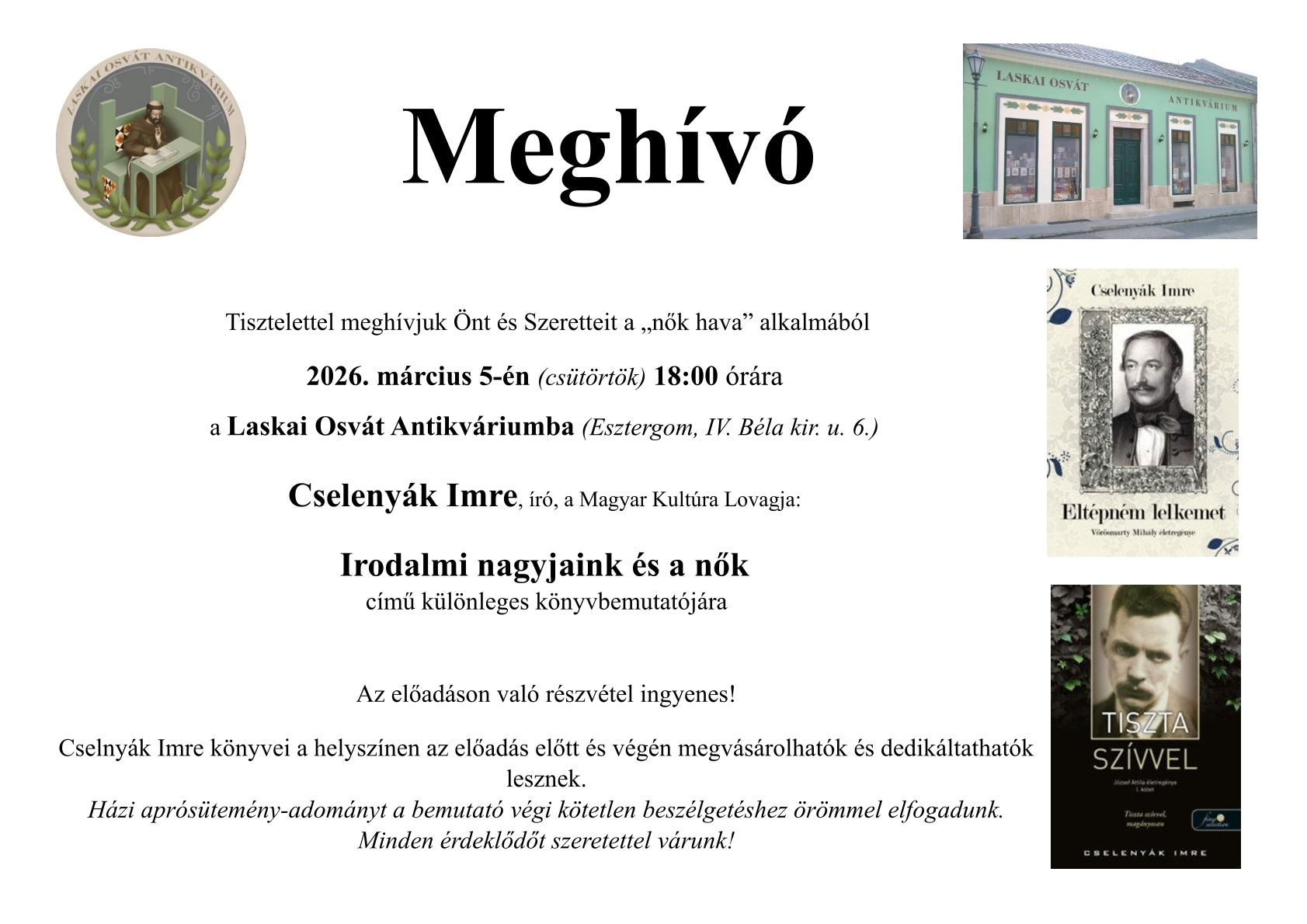 • Address: Laskai Osvát Antikvárium